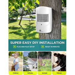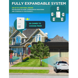 • Los sensores impermeables de este sistema utilizan infrarrojos pasivos para detectar el calor y el movimiento para que puedas ser alertado rápidamente del movimiento en tu entrada, porche delantero, puerta, cobertizo, pasarela o incluso piscina (para cuando los niños se acercan demasiado). Ideal para hogares, negocios y oficinas.
