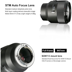 Meike Lente AF STM de marco completo F1.8 de 3.346 in (motor paso a paso), gran apertura de enfoque automático, teleobjetivo